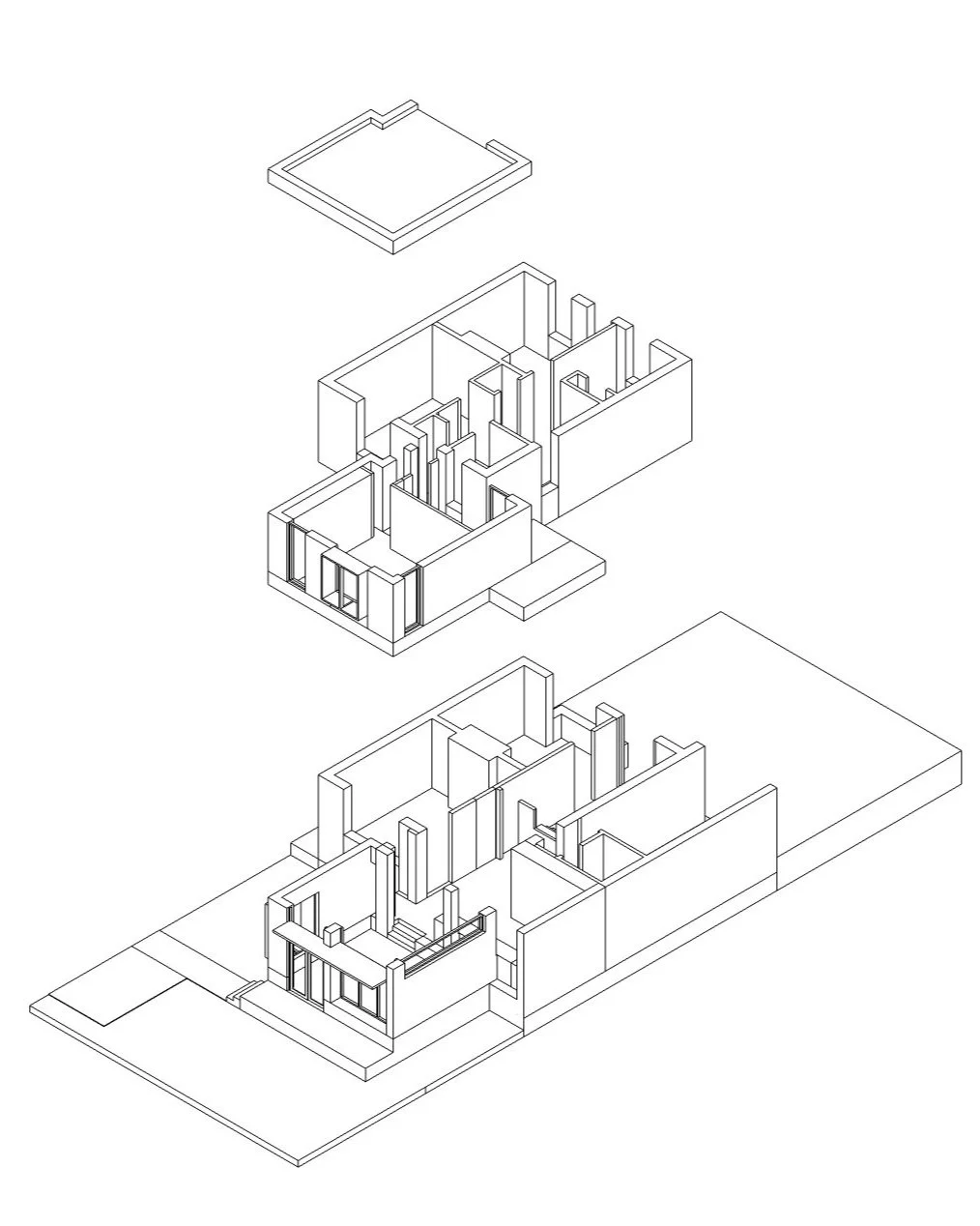 The existing dwelling has separate living, dining and kitchen rooms on Ground Floor as well as a study room. The First Floor has three bedrooms and a bathroom. As a detached house the plan is slightly different to a standard house with the stair location affording nice light penetrating deep into the centre of the plan and the circulation areas. A small substandard extension to the rear is removed, but otherwise the plan form of the dwelling is maintained intact with the exception of some minor tweaks to facilitate the breaking through.